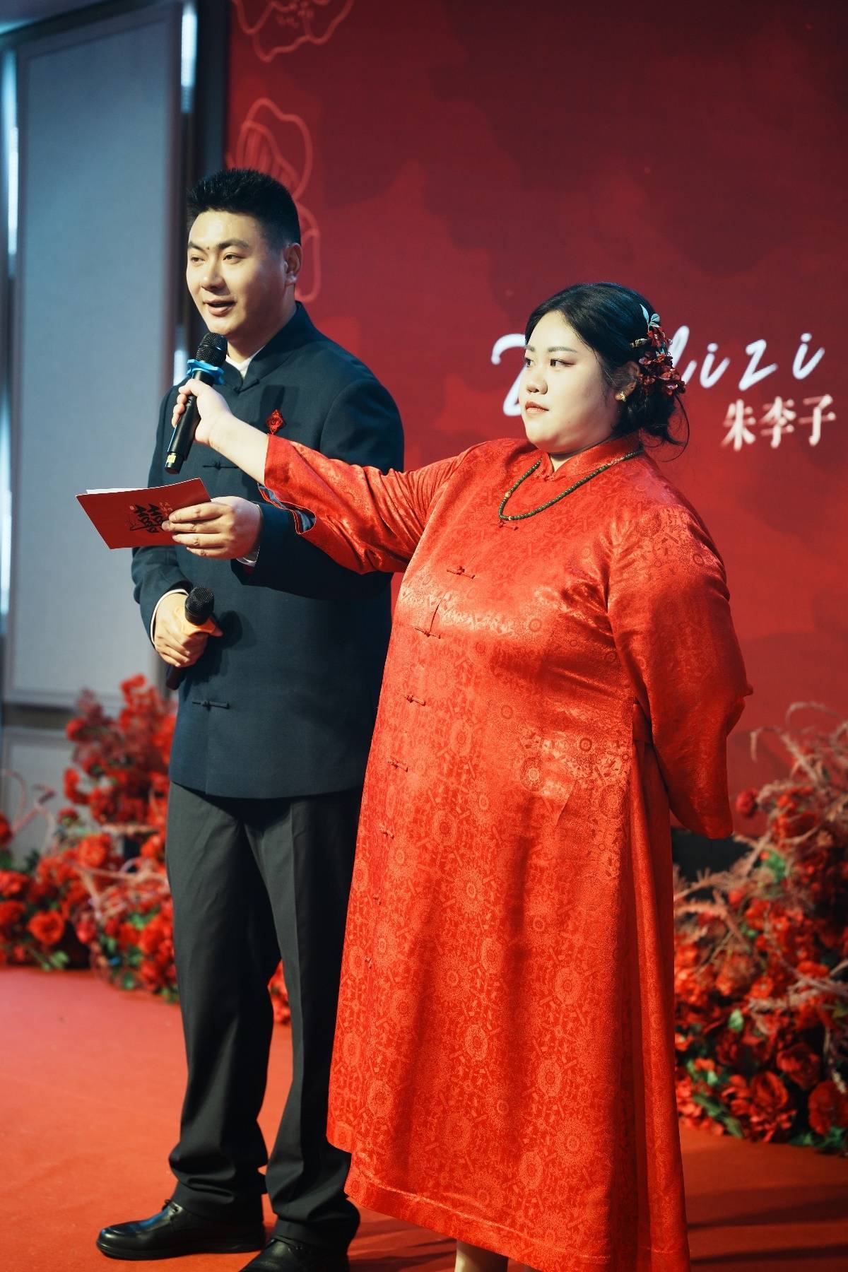 整场婚礼流程简约,没有请司仪,全程由两人自己主持。现场播放的视频也由冉女士亲手剪辑。新郎朱先生称,虽考虑过其他形式的婚礼,但他无条件支持妻子的决定。